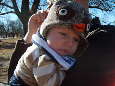 Everett is two months old in this picture. I love his owl hat that my friend Jeanna gave to him.